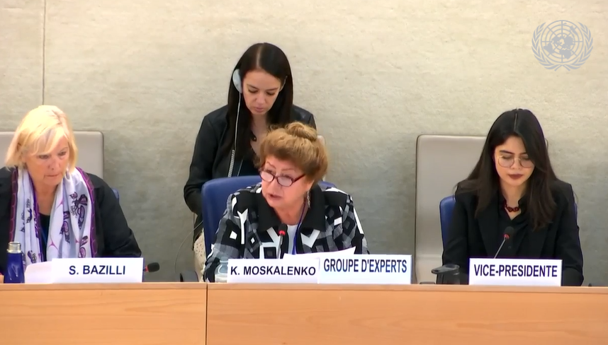 Карина Москаленко, председатель Группы независимых экспертов по Беларуси, представила выводы работы Группы на 57-й сессии Совета по правам человека. В своем выступлении она подчеркнула продолжающееся ухудшение ситуации с правами человека в Беларуси. Она подчеркивает широко распространенные репрессии в отношении гражданского общества и политических диссидентов, многие из которых подвергаются произвольным задержаниям, пыткам и бесчеловечному обращению. Москаленко отметила, что беларусское правительство продолжает преследовать оппозиционные группы, независимые СМИ и правозащитные организации, используя такие методы, как принудительная ликвидация, обозначение гражданских групп как «экстремистских организаций» и судебное преследование их членов.